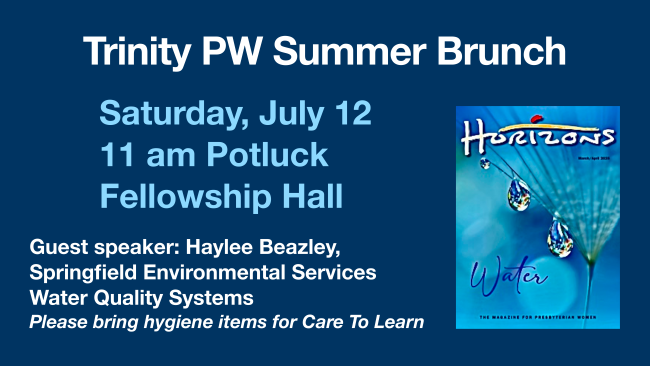 Forgiven and freed by God in Jesus Christ, and empowered by the Holy Spirit, we commit ourselves to nurture our faith through prayer and Bible study, to support the mission of the church worldwide, to work for justice and peace, and to build an inclusive, caring community of women that strengthens the Presbyterian Church (U.S.A.) and witnesses to the promise of God’s kingdom.